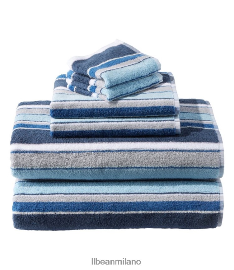 L.L.Bean Clothing – L.L.Bean Set asciugamani in cotone biologico a righe blu rustico unisex HT26404563 bagno