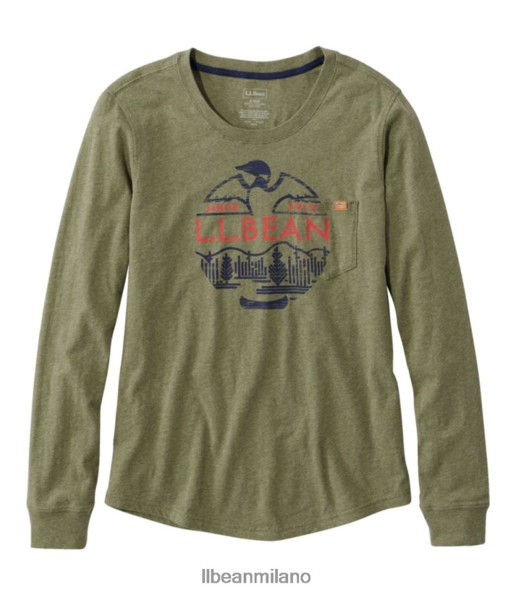 L.L.Bean Clothing – L.L.Bean T-shirt con taschino in cotone lavato lunatica di erica olivastra profonda donne HT26405922 vestiario